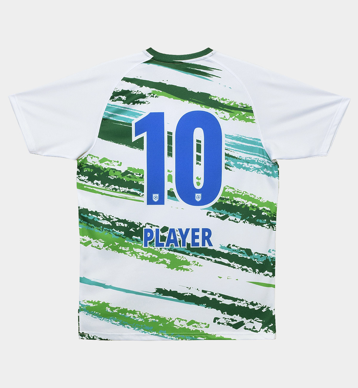 - 背番号をマーキングする場合、背番号によりシンプルにしたエンブレムを重ねて、1色で印刷できます。色は弊社で判断させていただきます。