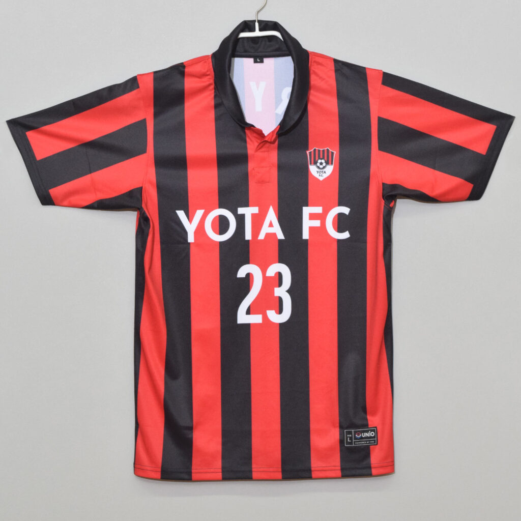 サッカーユニフォームの王道、シンプルな縦ボーダーのデザイン